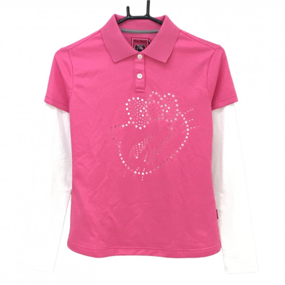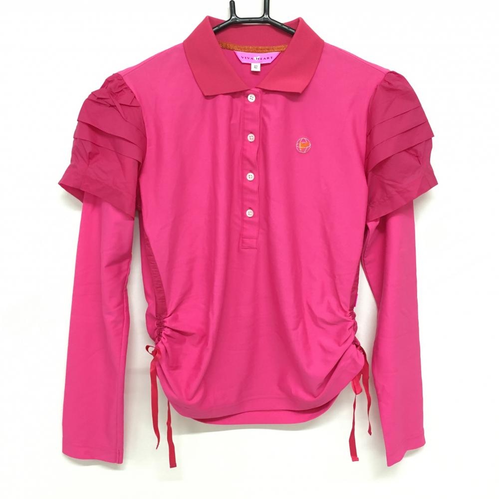 ビバハート 長袖ポロシャツ 白 襟裏・袖口裏ピンク ロゴ刺しゅう 胸ポケット レディース 40(M) ゴルフウェア VIVA HEART