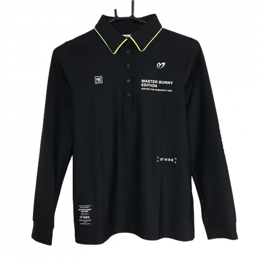 【美品】マスターバニー 長袖ポロシャツ 黒 ロゴ刺しゅう レディース 2(L) ゴルフウェア MASTER BUNNY EDITION