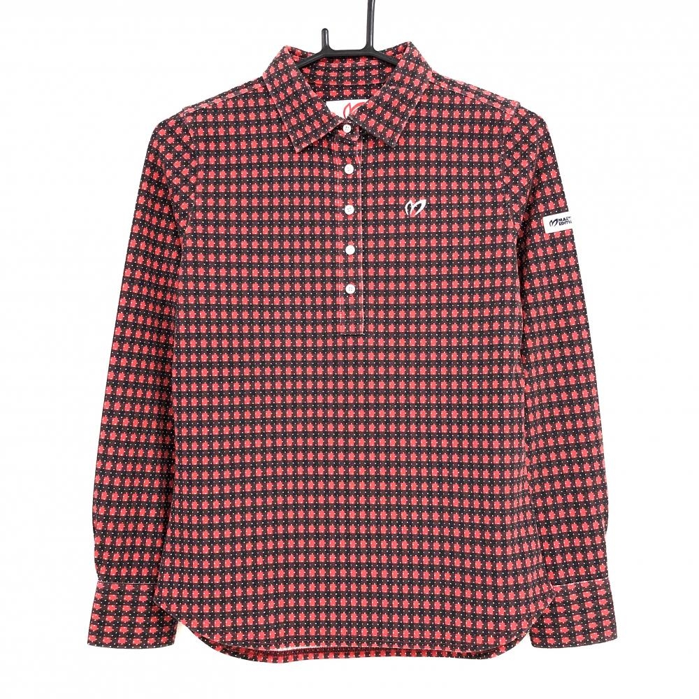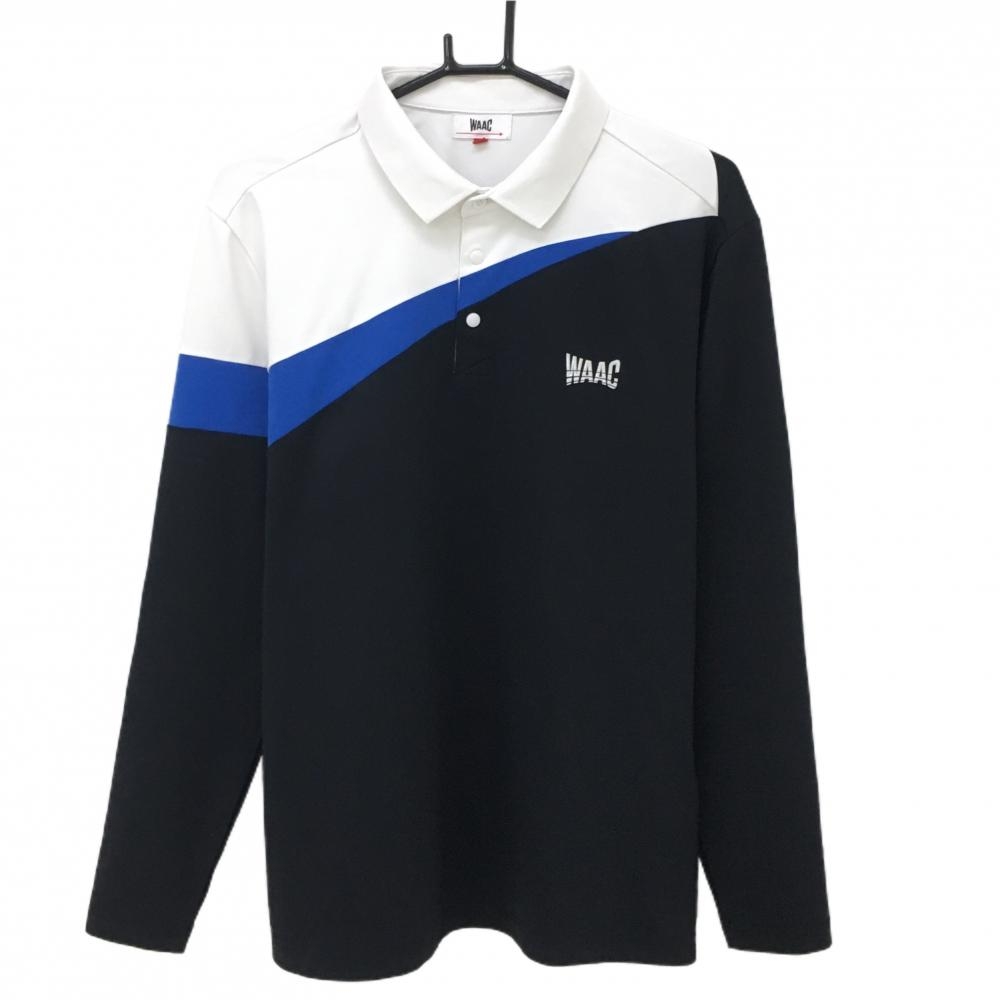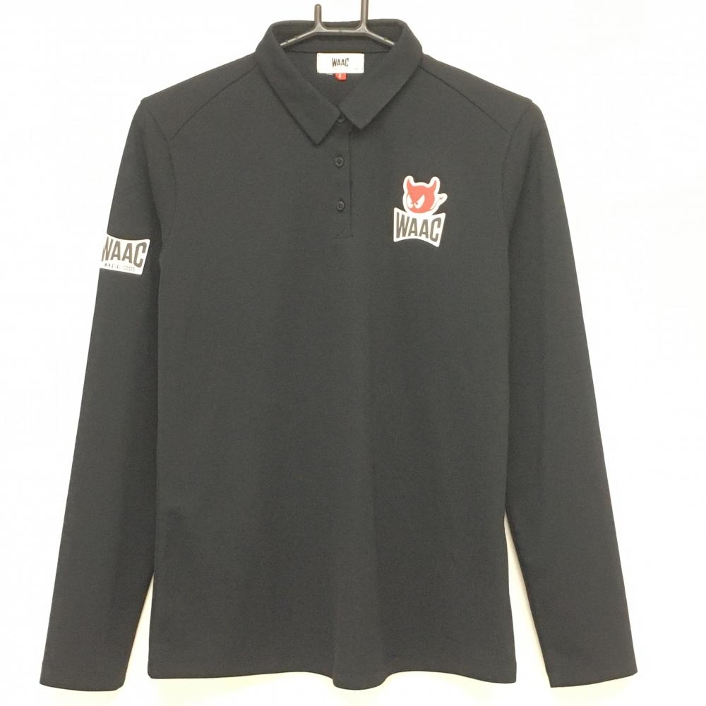【超美品】ワック 長袖ポロシャツ 黒系×白 総柄 胸ロゴ レディース 2(M) ゴルフウェア WAAC