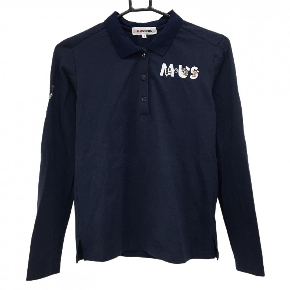 【超美品】ミスターメンリトルミス 長袖ポロシャツ ネイビー×ライトピンク 総柄 レディース M ゴルフウェア Mr.Men Little Miss