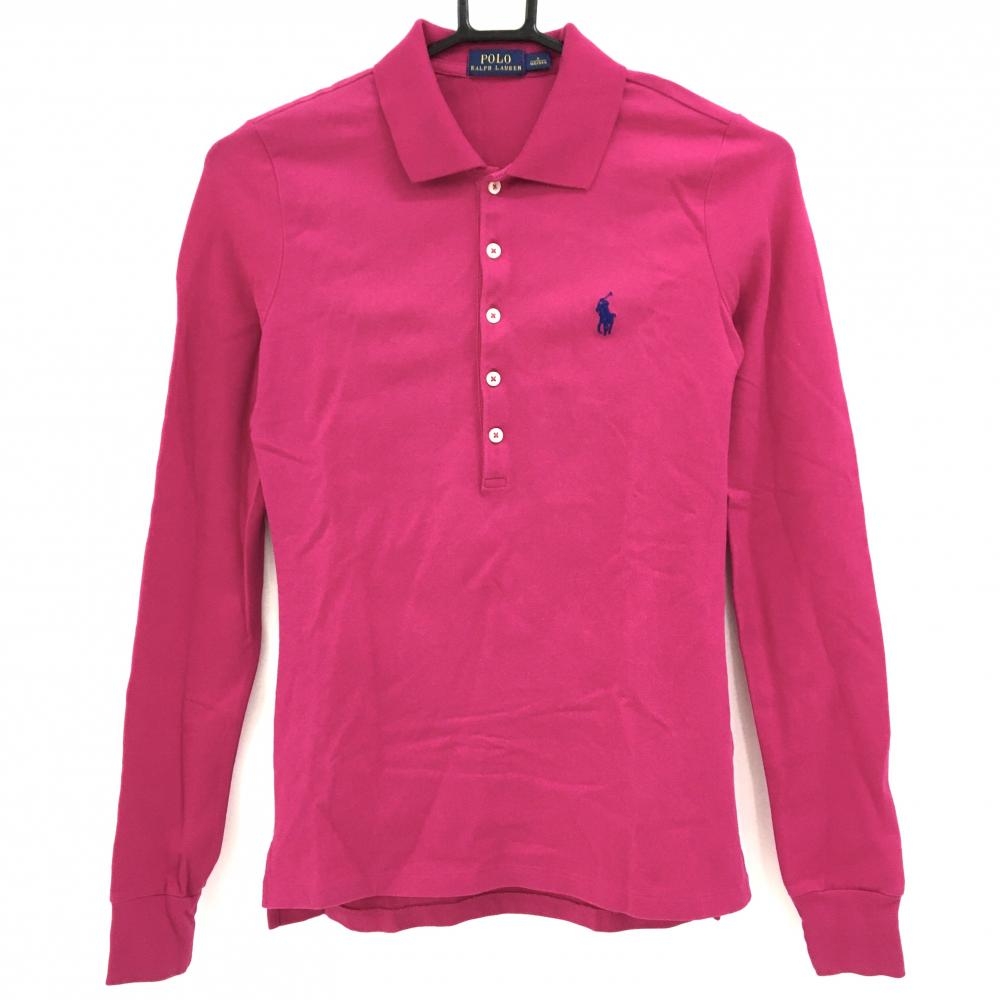 マンシングウェア 長袖ポロシャツ ピンク 刺しゅう レディース L ゴルフウェア Munsingwear