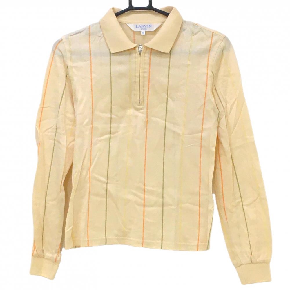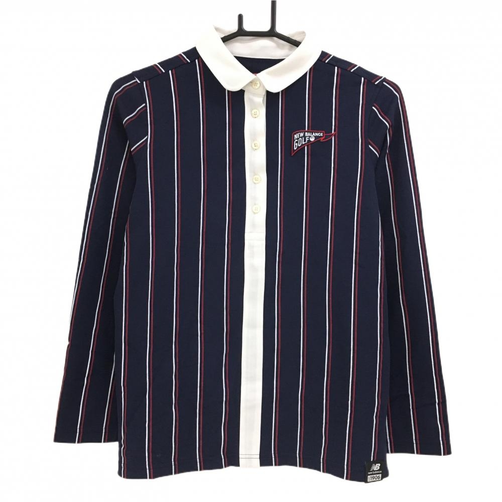 【超美品】ルコックゴルフ 長袖ポロシャツ ネイビー×白 ストライプ ロゴ刺しゅう レディース S ゴルフウェア le coq sportif