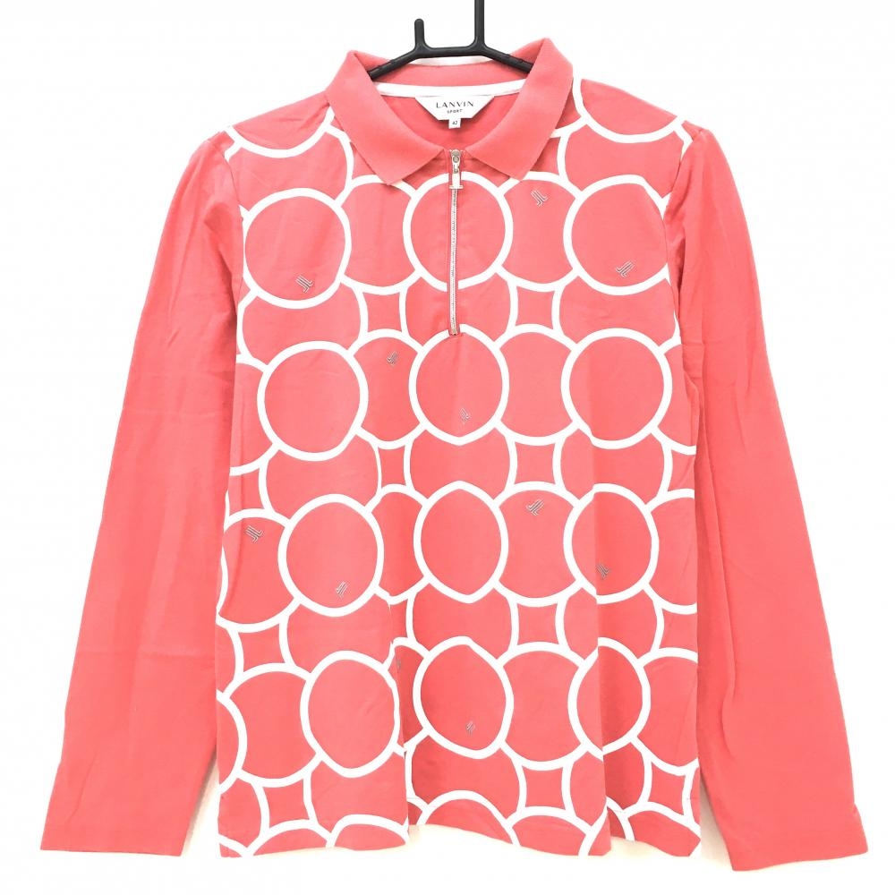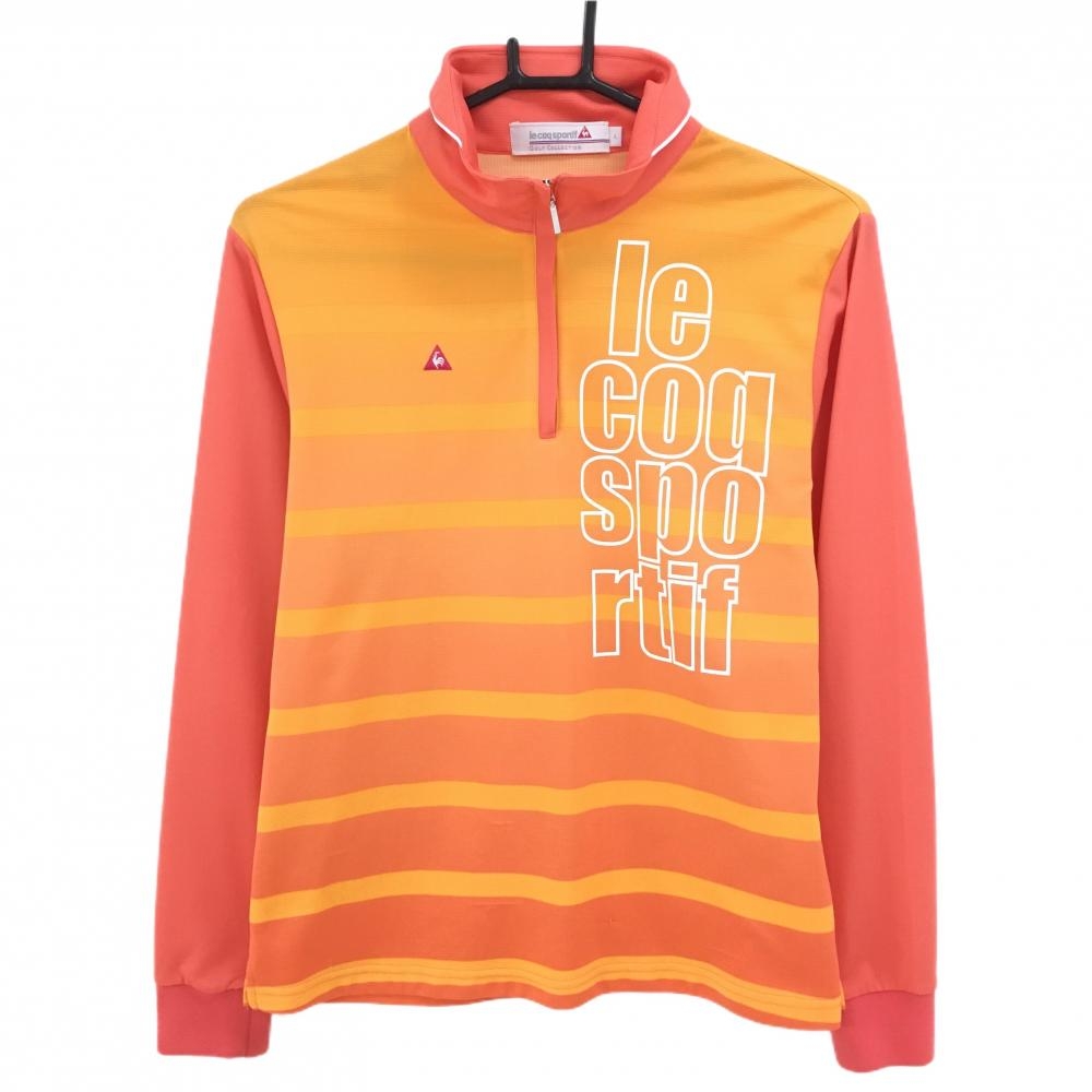 【超美品】デサントゴルフ 長袖ポロシャツ オレンジレッド×黒 サイドビッグプリント 裏起毛 中田英寿 レディース L ゴルフウェア DESCENTE