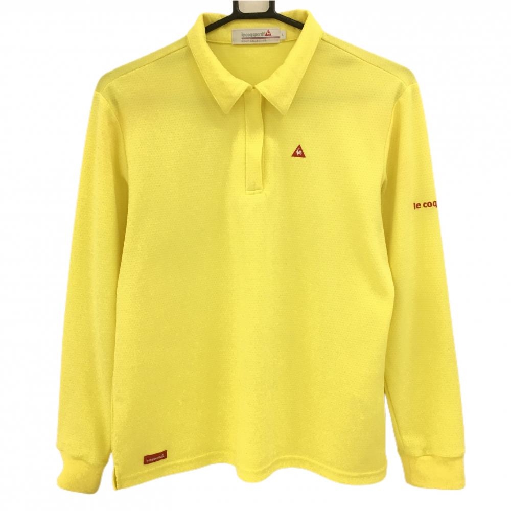 【美品】ルコックゴルフ 長袖ポロシャツ レッド×白 ロゴ刺しゅう 袖ワッペン メンズ L ゴルフウェア le coq sportif