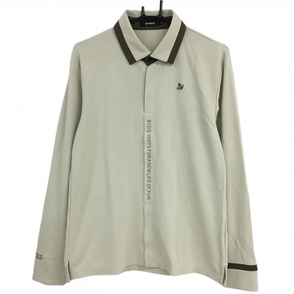 カッターアンドバック 長袖ポロシャツ アイボリー ボーダー織生地 裏微起毛 ボタンダウン メンズ M ゴルフウェア CUTTER&BUCK