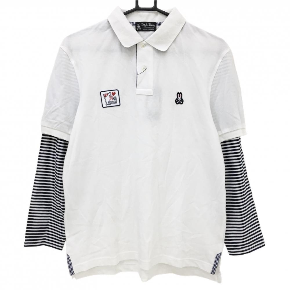 【美品】マスターバニー 長袖ポロシャツ 白 ロゴ黒 メンズ 6(XL) ゴルフウェア MASTER BUNNY EDITION