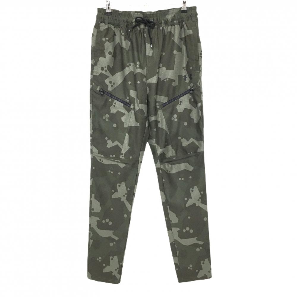 【美品】アンダーアーマー パンツ カーキ カモフラ調 迷彩 ウエストゴム ジップポケット メンズ SM ゴルフウェア UNDER ARMOUR
