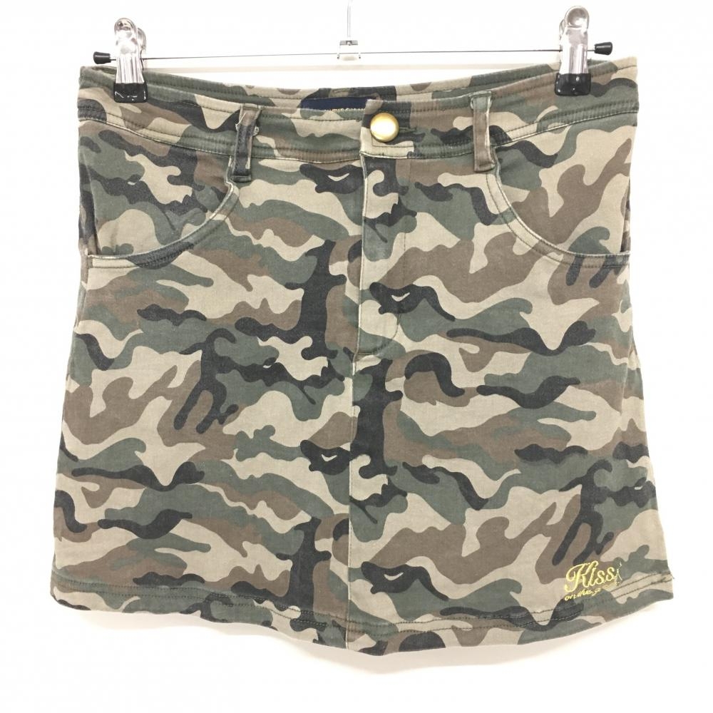 キスオンザグリーン ストレッチスカート ライトベージュ×カーキ 迷彩 カモフラ レディース 3(L) ゴルフウェア kiss on the green
