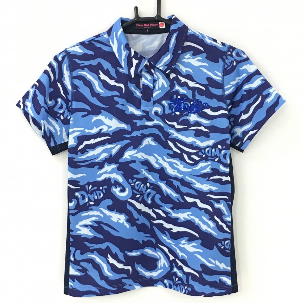【超美品】ダンスウィズドラゴン 半袖ポロシャツ パープル×ブルー カモフラ調 レディース 2(M) ゴルフウェア Dance With Dragon