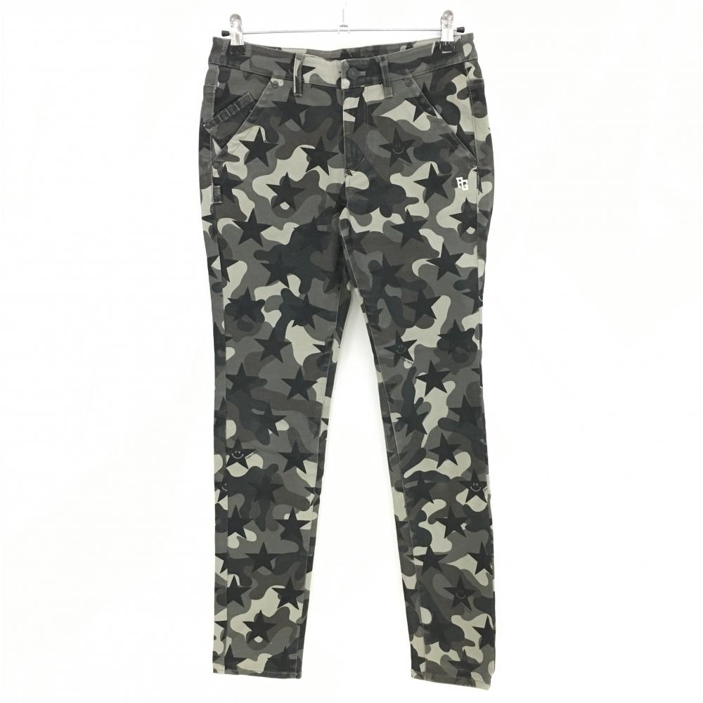 パーリーゲイツ パンツ カーキ×黒 カモフラ柄 迷彩 星型ニコちゃん ストレッチ レディース 1(M) ゴルフウェア PEARLY GATES
