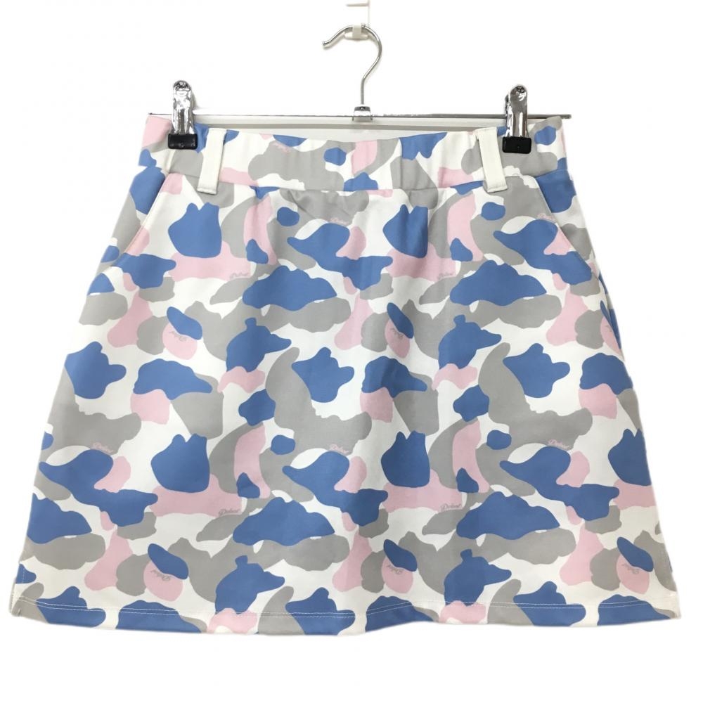 【美品】デルソル スカート 白×マルチカラー カモフラ 迷彩 総柄 ストレッチ 内側インナーパンツ レディース M ゴルフウェア DELSOL