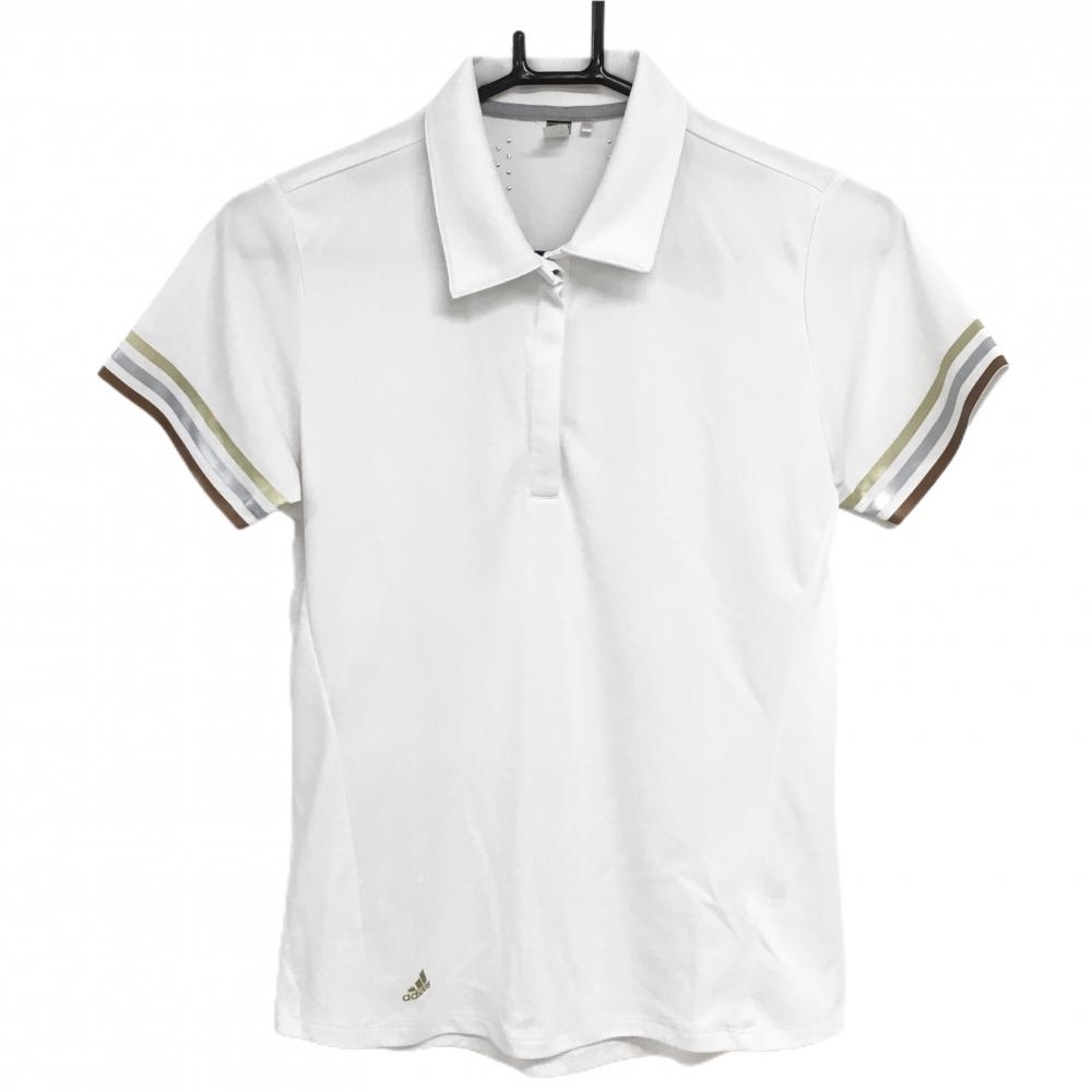 アディダス 半袖ポロシャツ 白×ゴールド 袖ライン レディース L/G ゴルフウェア adidas