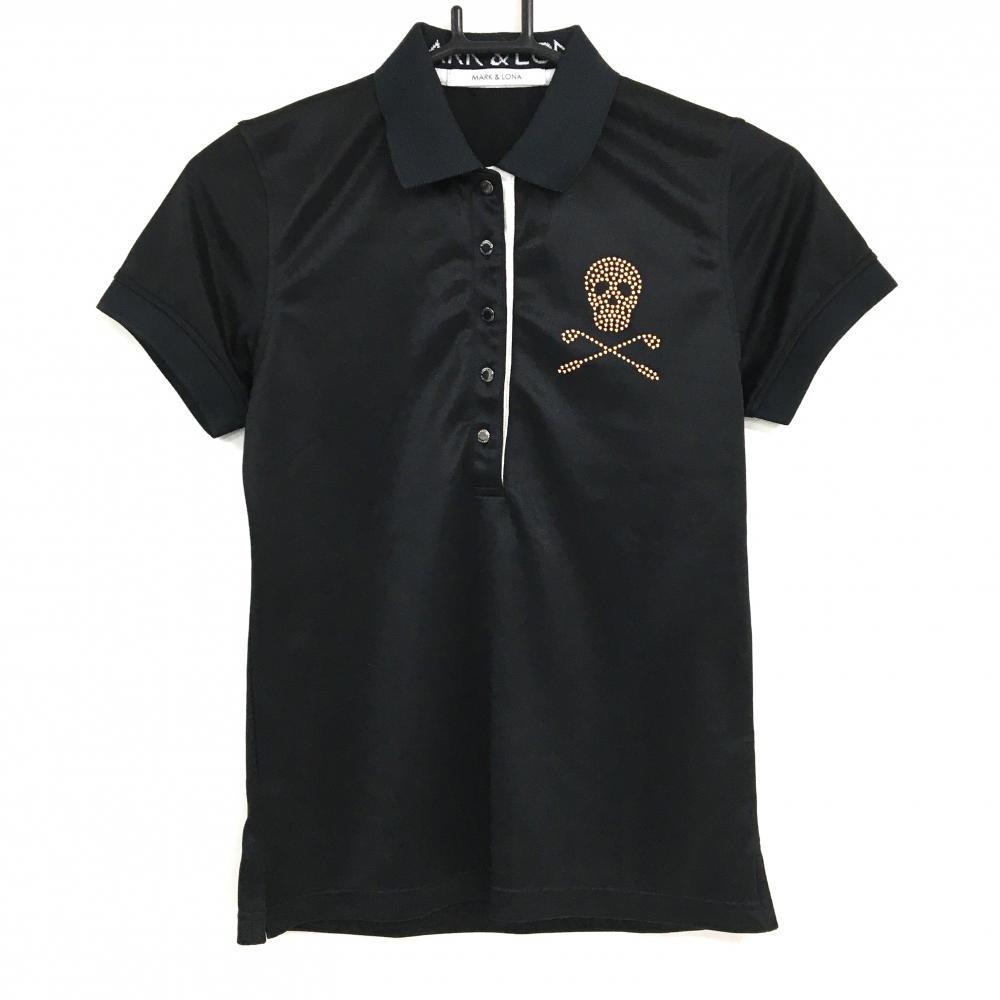 【超美品】マークアンドロナ 半袖ポロシャツ 黒×ゴールド 背面ビッグスカル ラメ レディース S ゴルフウェア MARK&LONA