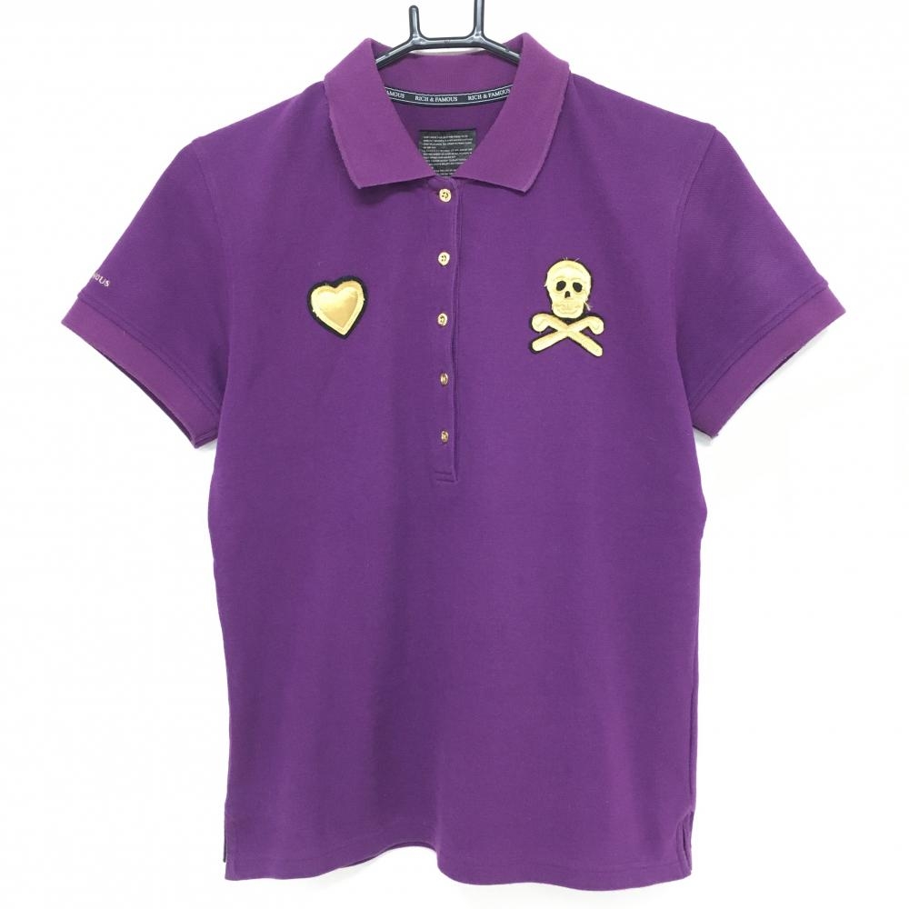 マークアンドロナ 半袖ポロシャツ パープル×ゴールド スカルワッペン レディース M ゴルフウェア MARK&LONA