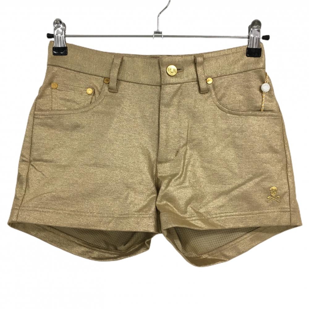 【新品】マークアンドロナ ショートパンツ ゴールド 背面スタッズ メッシュ裏地 レディース S ゴルフウェア MARK&LONA