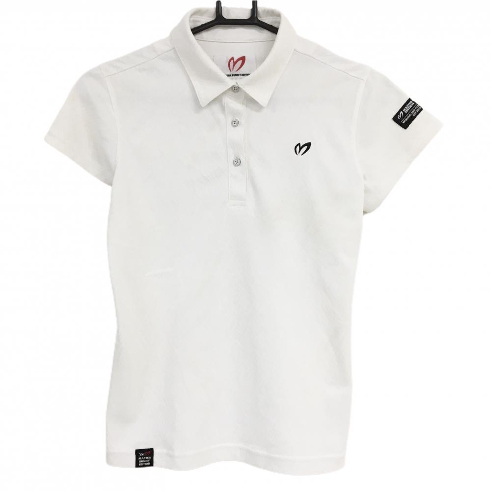 【美品】マスターバニー 半袖ポロシャツ 白×ゴールド 総柄 レディース 0(S) ゴルフウェア MASTER BUNNY EDITION
