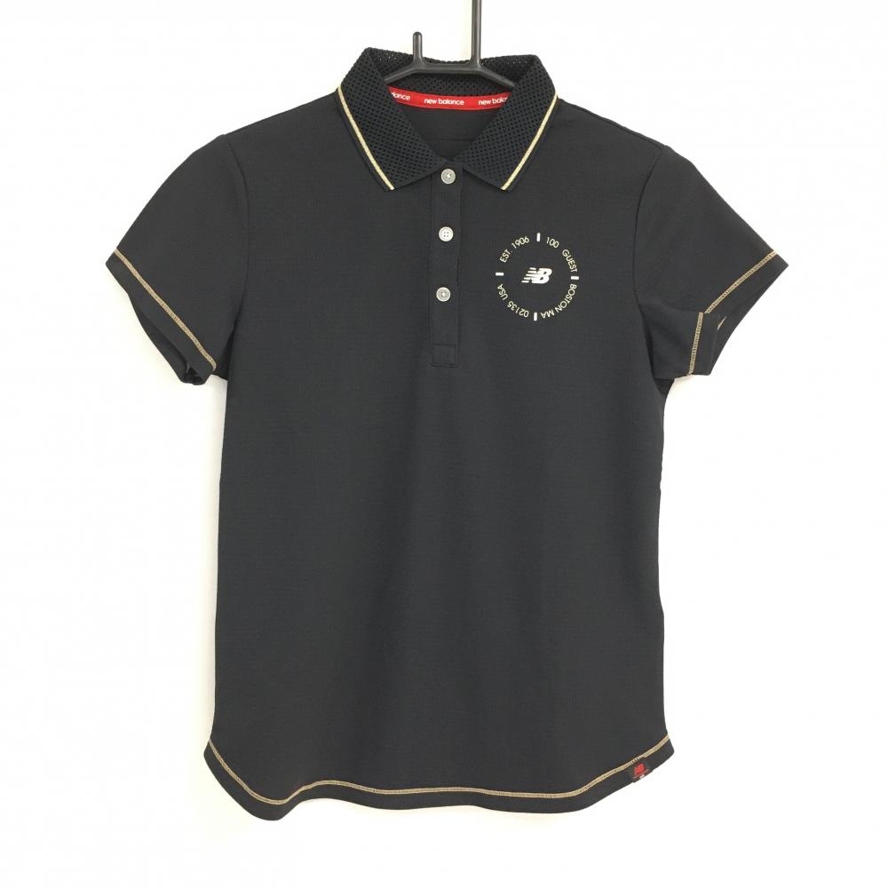 【超美品】タイトリスト 半袖ポロシャツ 黒×ゴールド リブライン レディース M ゴルフウェア TITLEIST