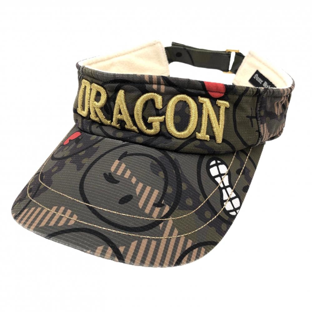 【美品】ダンスウィズドラゴン つば広サンバイザー ベージュ×ゴールド レディース フリーサイズ ゴルフウェア Dance With Dragon