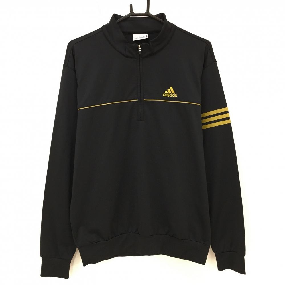 【超美品】キャロウェイ 長袖ポロシャツ 黒×ゴールド ロゴ刺しゅう ラメ糸 裏起毛 レディース L ゴルフウェア Callaway