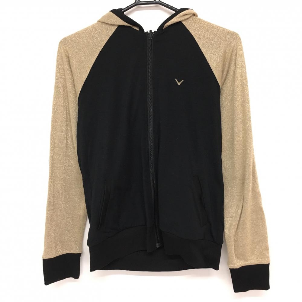 【超美品】キャロウェイ ニットジップパーカー 黒×ゴールド ロゴ刺しゅう 薄手 レディース M ゴルフウェア Callaway