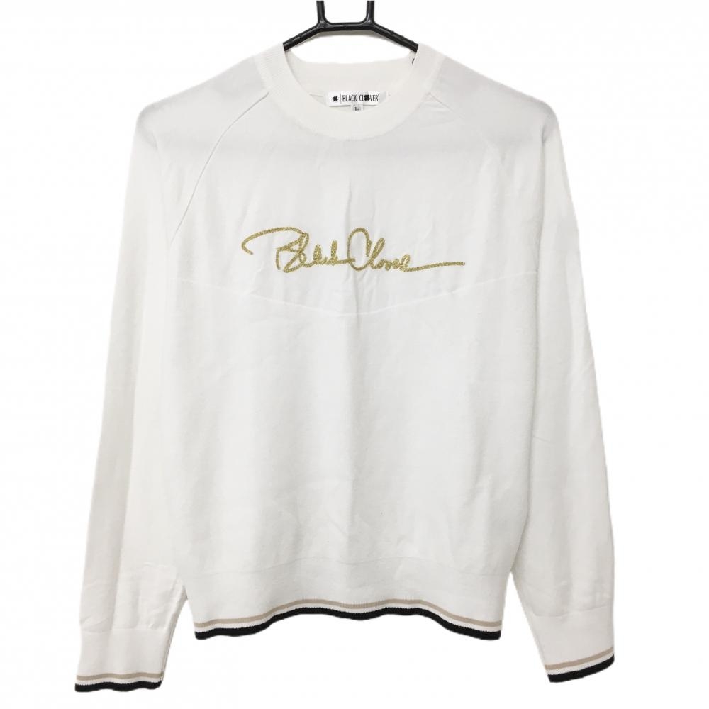ダンスウィズドラゴン 長袖ハイネックシャツ 白×ゴールド スパンコール 裏起毛 レディース 2(M) ゴルフウェア Dance With Dragon