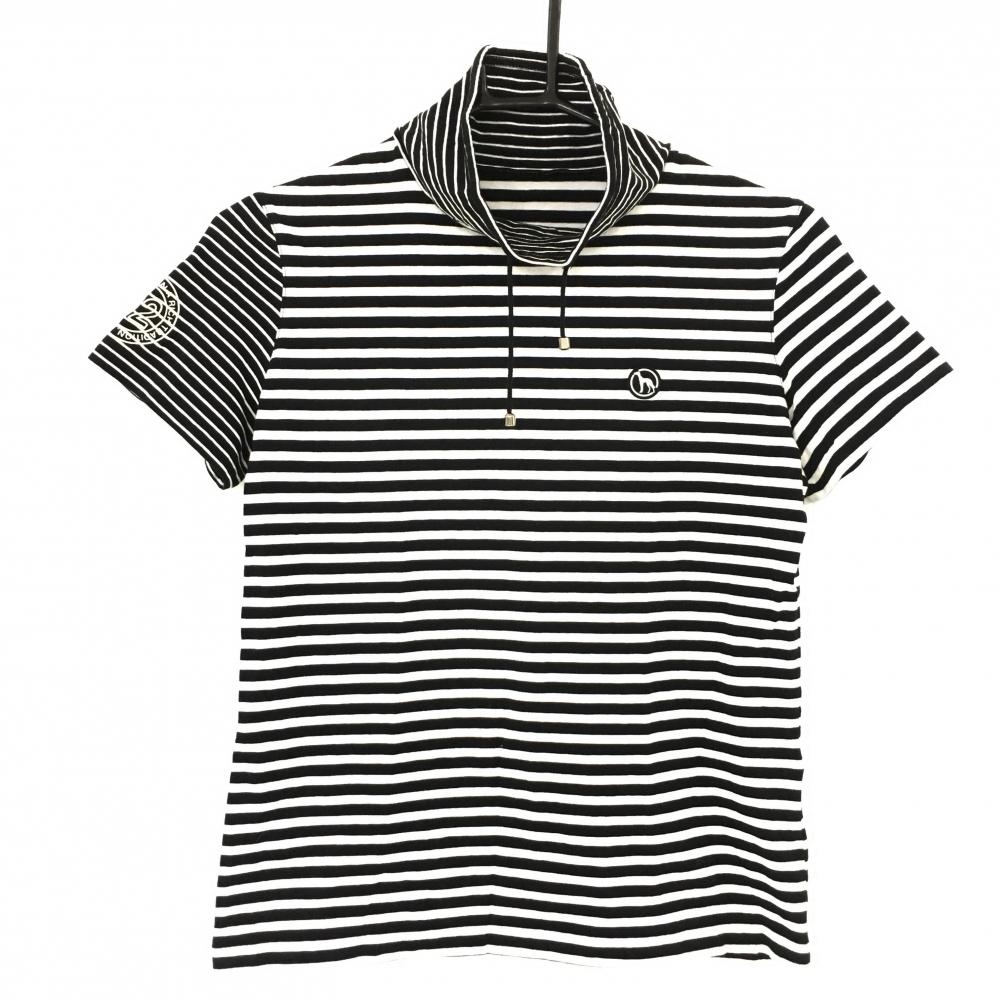 ヒールクリーク 半袖ハイネックシャツ 白×黒 一部ボーダー ハーフジップ レディース 40(M) ゴルフウェア Heal Creek