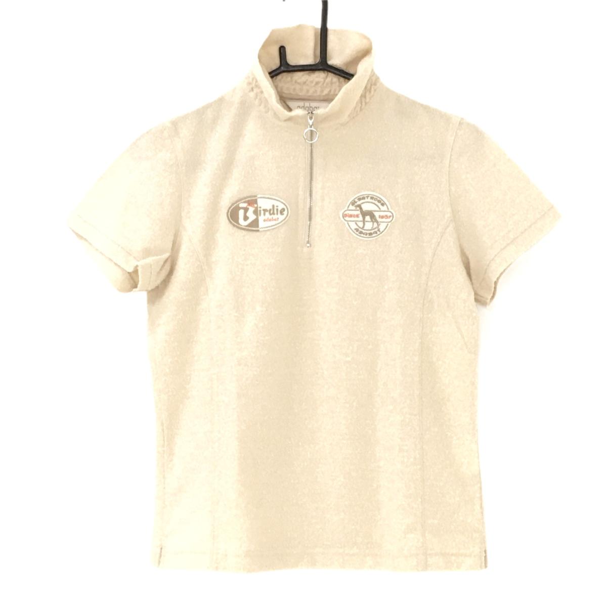 【美品】アディダス 半袖ハイネックシャツ 白 織生地 ハーフジップ ロゴ刺しゅう レディース M/M ゴルフウェア adidas