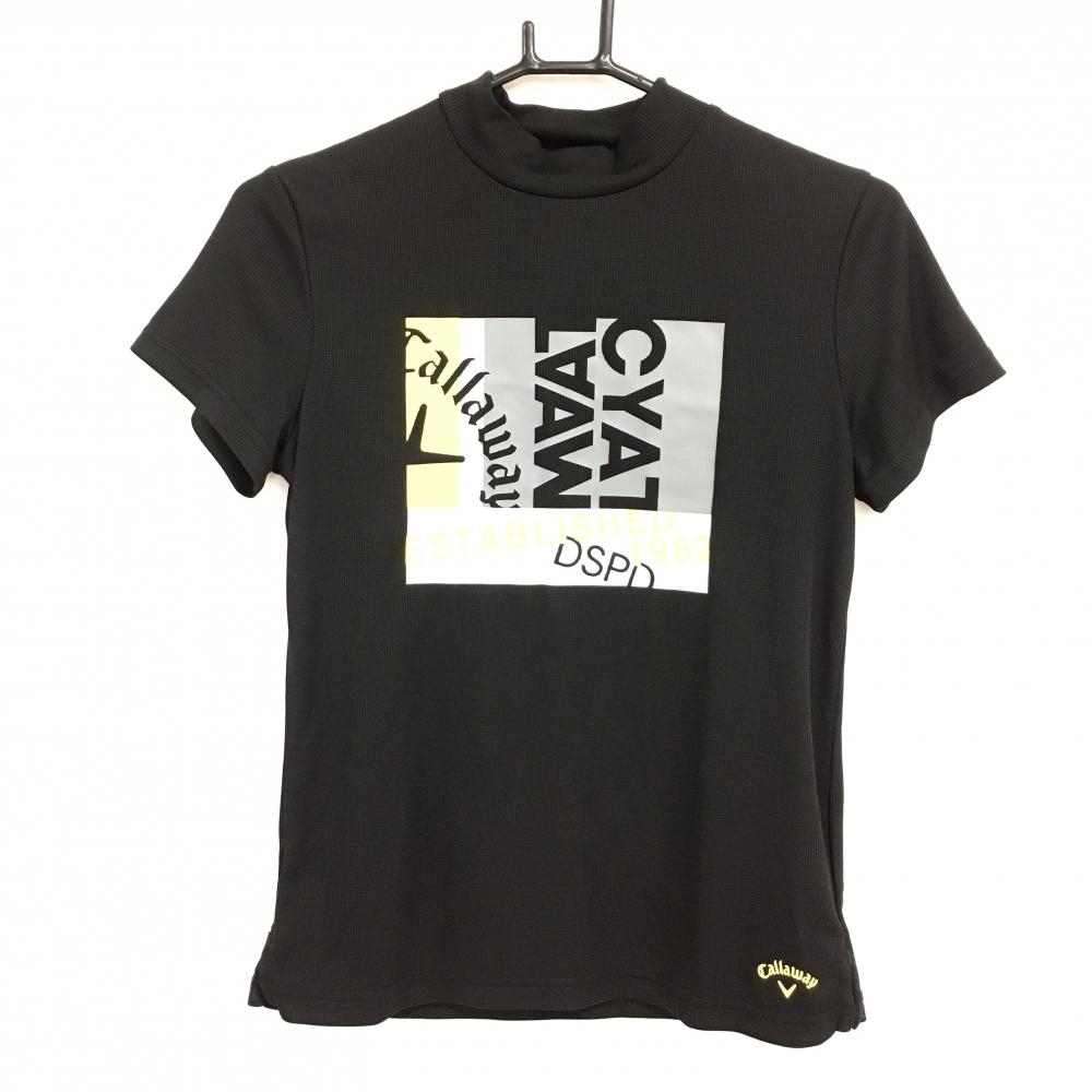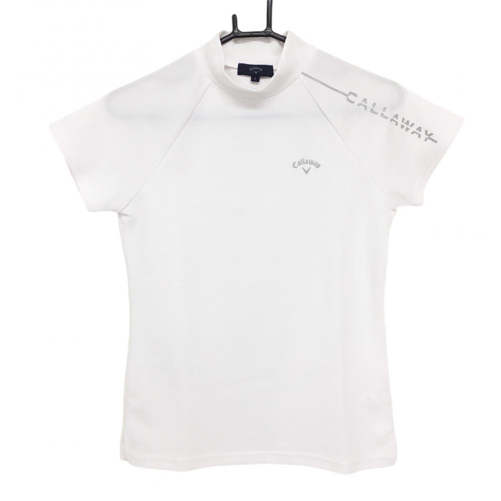 キャロウェイ 半袖ハイネックシャツ 白 イエロー ビックロゴ レディース M ゴルフウェア 2022年モデル Callaway