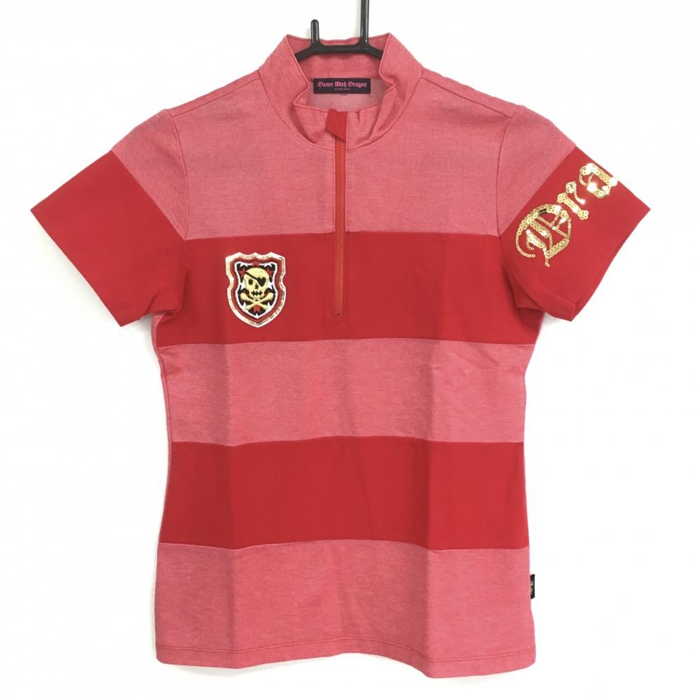 ダンスウィズドラゴン 半袖ハイネックシャツ レッド×ゴールド ハーフジップ 刺しゅう レディース 2(M) ゴルフウェア Dance With Dragon