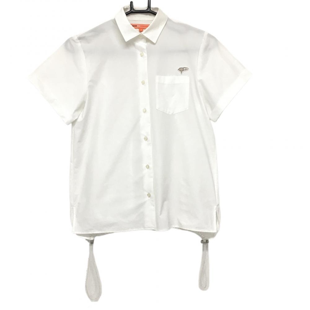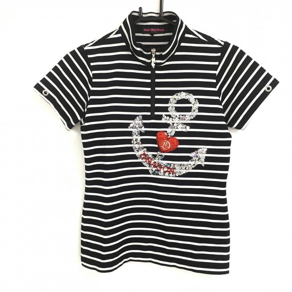 ダンスウィズドラゴン 半袖スキッパーシャツ 白×黒 パイル地 スカル 袖口ドット レディース 2(M) ゴルフウェア Dance With Dragon