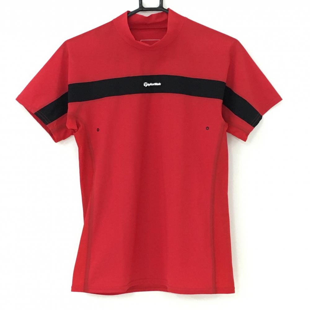 【美品】ルコック 半袖ハイネックシャツ 黒×レッド 胸元ボーダー ハーフジップ メンズ M ゴルフウェア le coq sportif