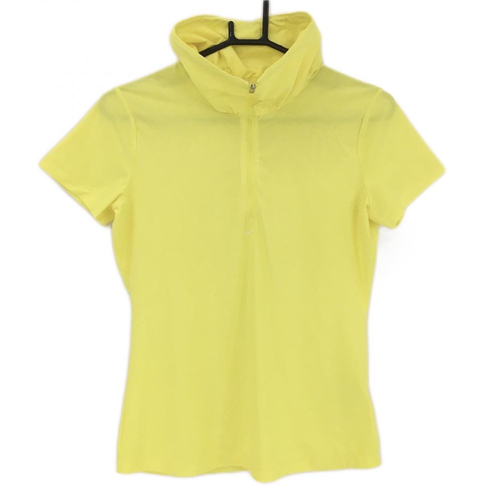ルコック 半袖ハイネックシャツ イエロー×ネイビー 胸部ライン ハーフジップ レディース S ゴルフウェア le coq sportif