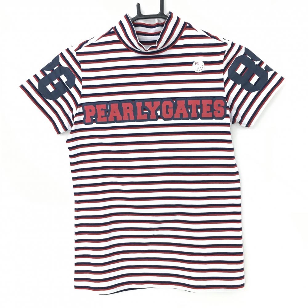 パーリーゲイツ 半袖ハイネックシャツ レッド×白 20周年 コットン混 レディース 1(M) ゴルフウェア PEARLY GATES