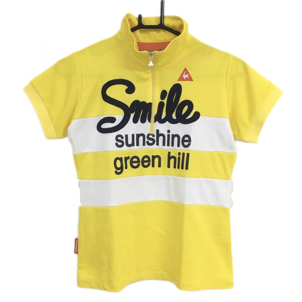 【超美品】ルコック 半袖ハイネックシャツ イエロー×白 ハーフジップ レディース M ゴルフウェア le coq sportif