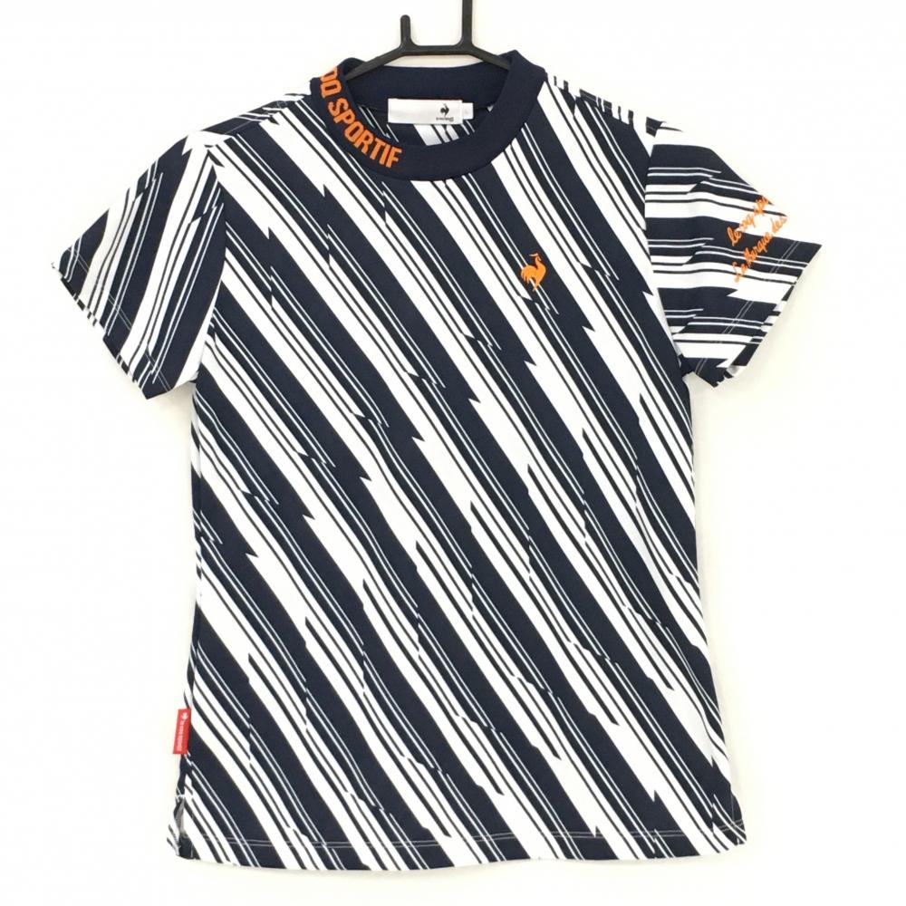 ルコック 半袖ハイネックシャツ オレンジ×白 前面ドット メッシュ生地 ハーフジップ レディース M ゴルフウェア le coq sportif
