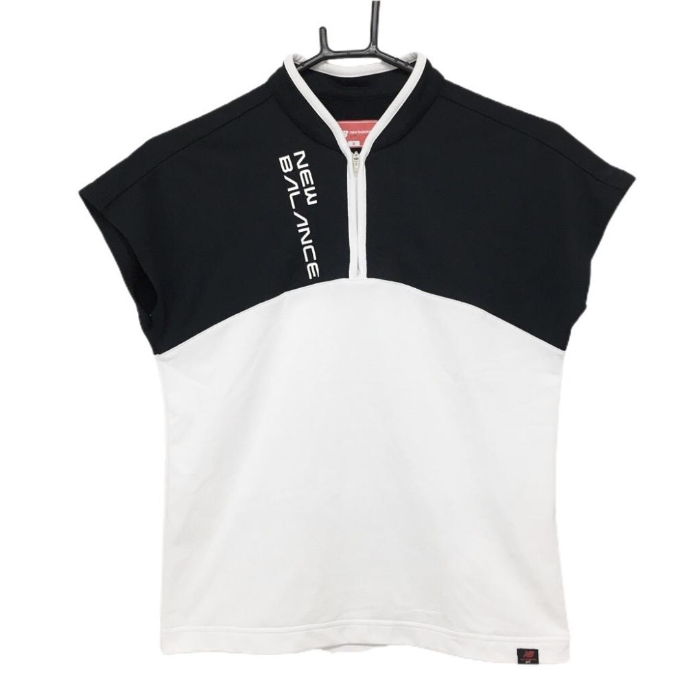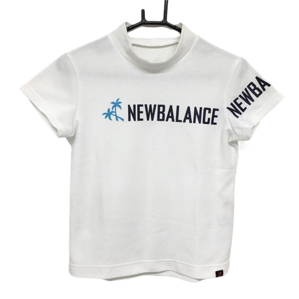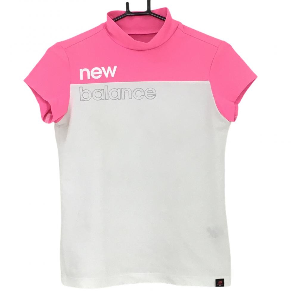 【美品】ニューバランス 半袖ハイネックシャツ 蛍光イエロー×白 ネック異素材 レディース 0 ゴルフウェア 2022年モデル New Balance