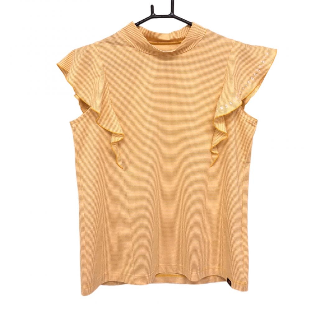 【超美品】ルコック 半袖ハイネックシャツ イエロー×オレンジ ハーフジップ ロゴ刺しゅう レディース L ゴルフウェア le coq sportif