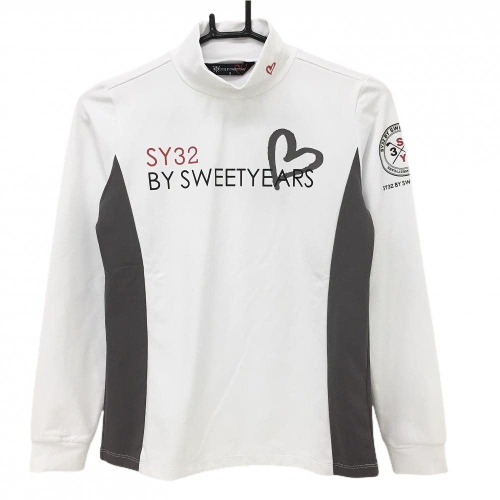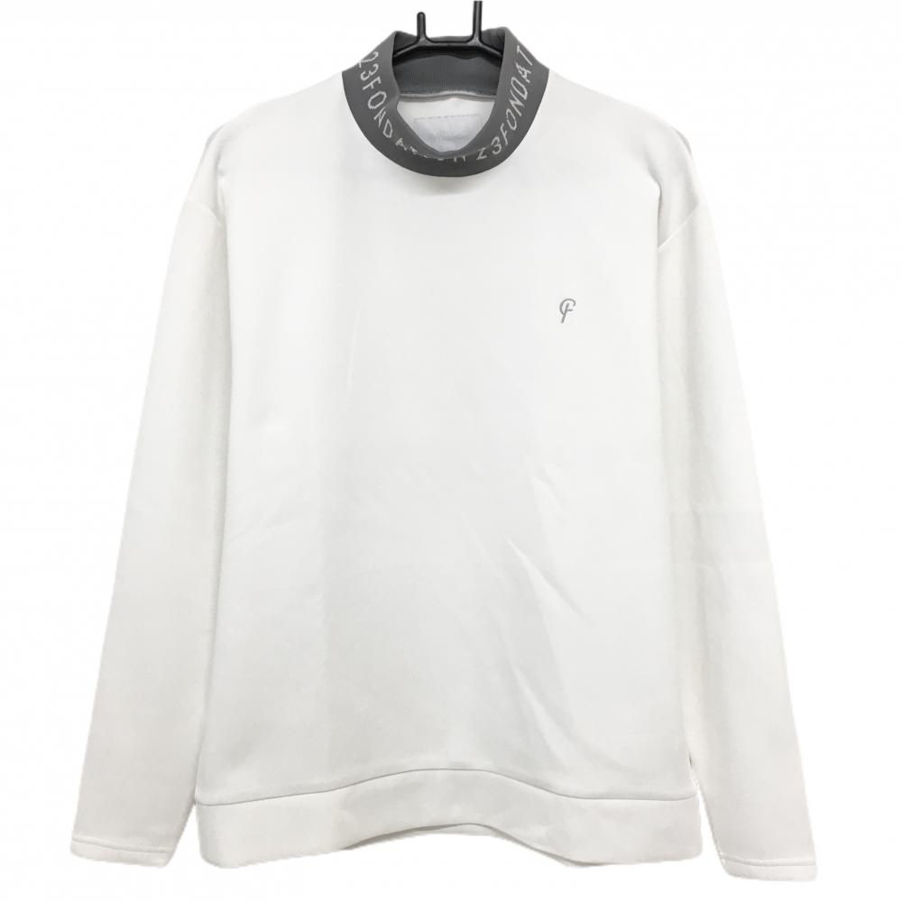 TFW49 長袖ハイネックシャツ 白 ネックロゴ 後ろ身頃裏起毛 ストレッチ メンズ S ゴルフウェア TFW49