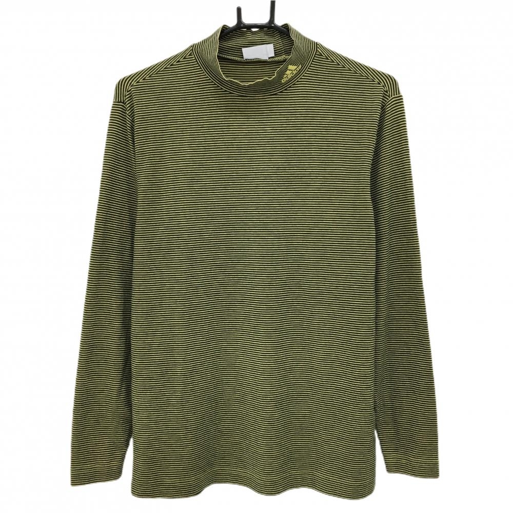 ジャックバニー 長袖ハイネックシャツ カーキ×イエロー ボーダー 胸ロゴ メンズ 4(M) ゴルフウェア Jack Bunny