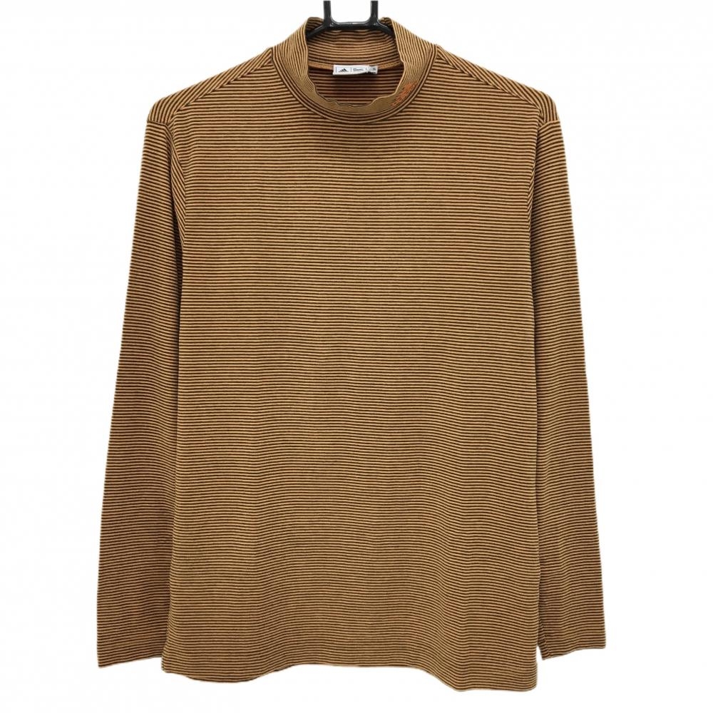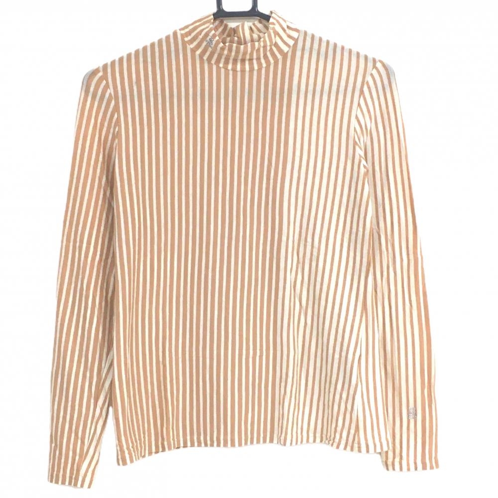 【超美品】アーノルドパーマーゴルフ 長袖ハイネックシャツ オレンジ×ベージュ系 ボーダー レディース O(XL) ゴルフウェア Arnold Palmer