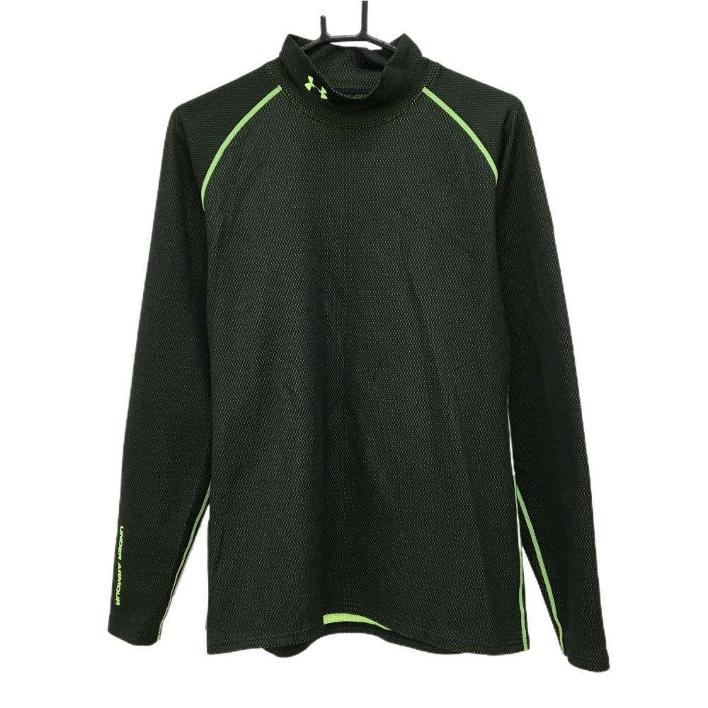 【超美品】アンダーアーマー 長袖ハイネックシャツ グレー×黒 ボーダー 裏微起毛 ロゴプリント レディース MD ゴルフウェア UNDER ARMOUR
