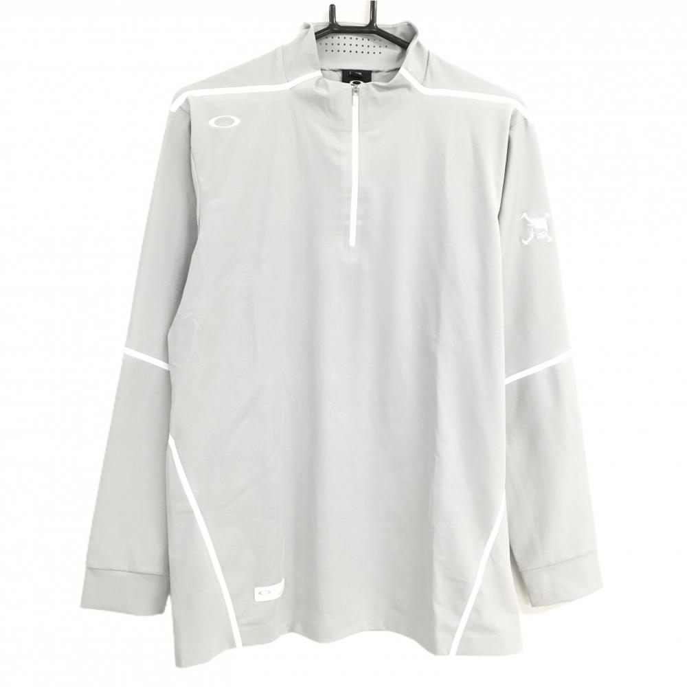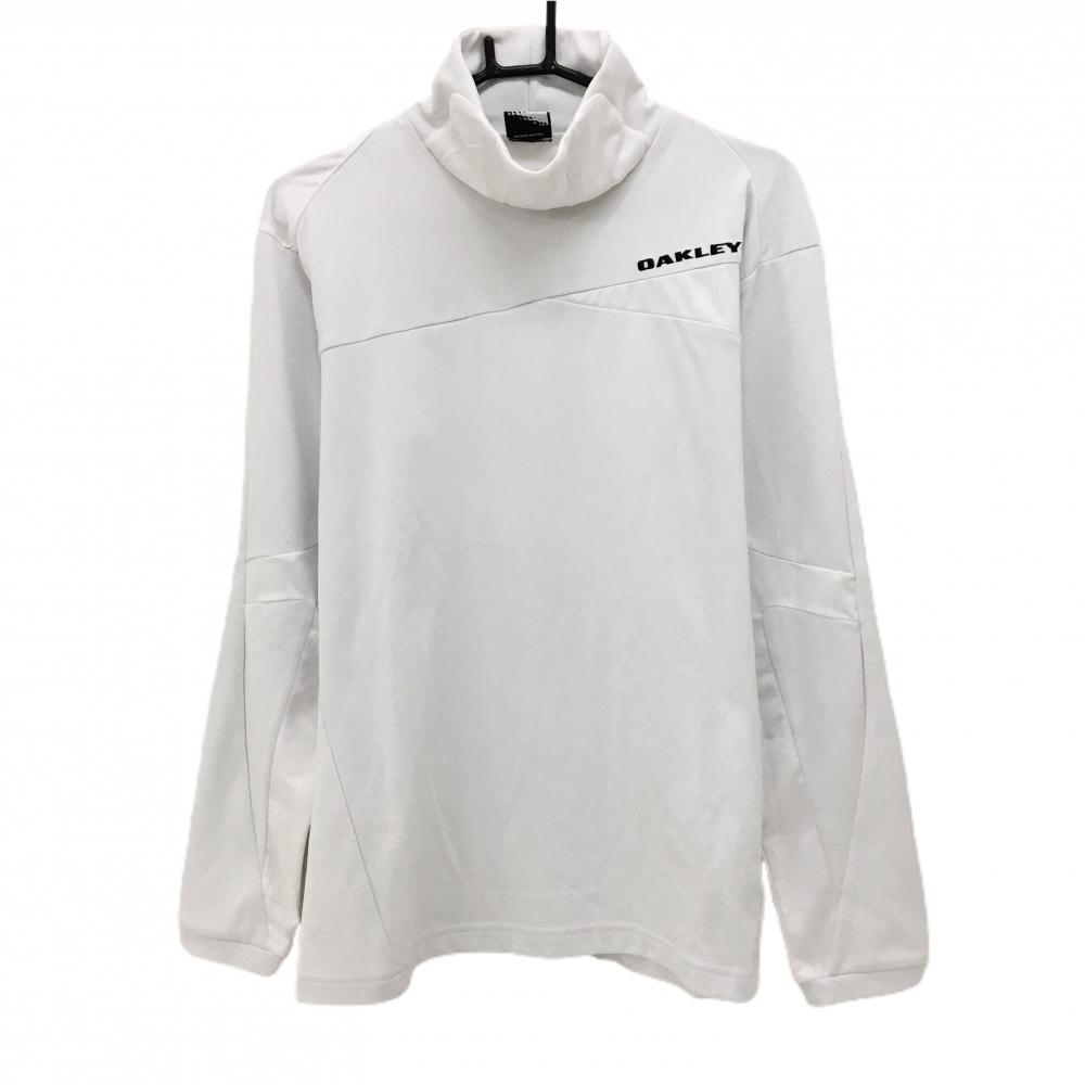オークリー 長袖タートルネックシャツ 白 ロゴグレー 袖・後ろ地模様 ネックボタン メンズ XL ゴルフウェア Oakley