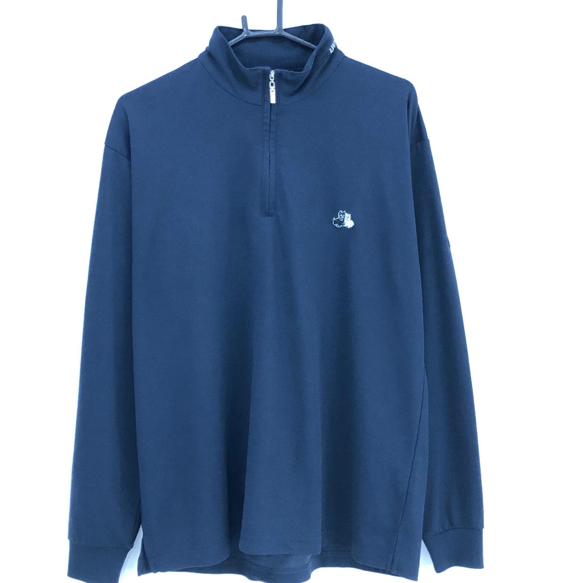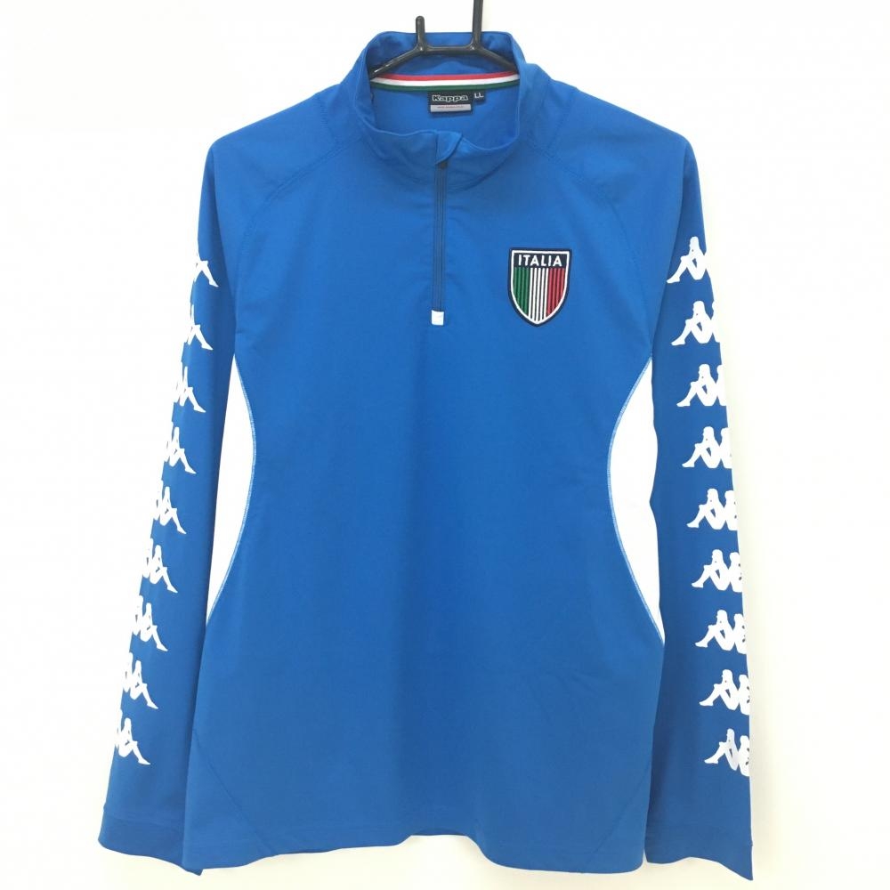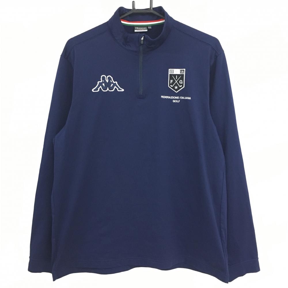 カッパ 長袖ハイネックシャツ 白×ネイビー ハーフジップ ロゴブルー 裏微起毛 メンズ L ゴルフウェア Kappa