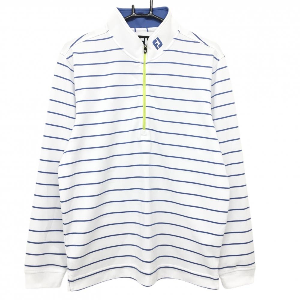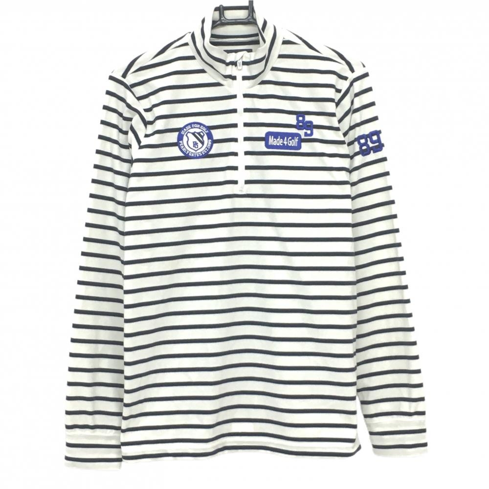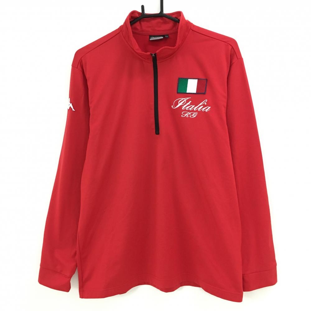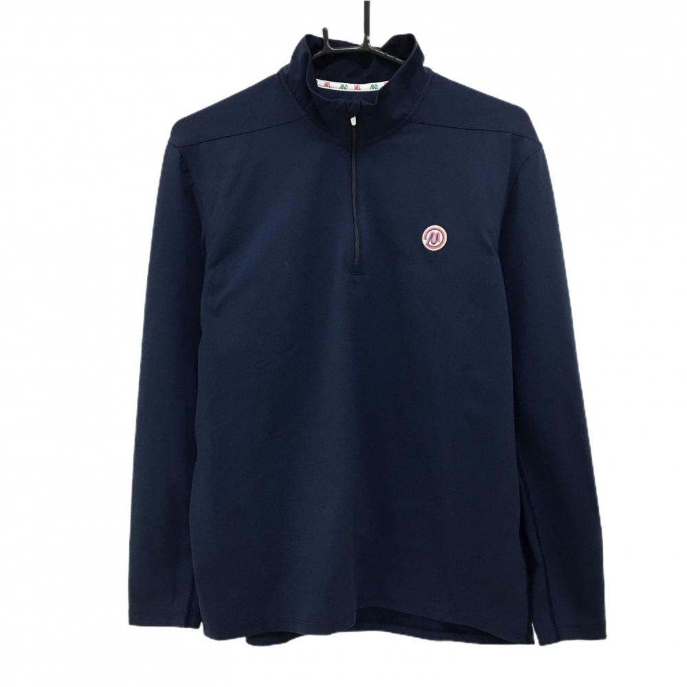 カッパ 長袖ハイネックシャツ 白×ネイビー ハーフジップ ロゴブルー 裏微起毛 メンズ L ゴルフウェア Kappa