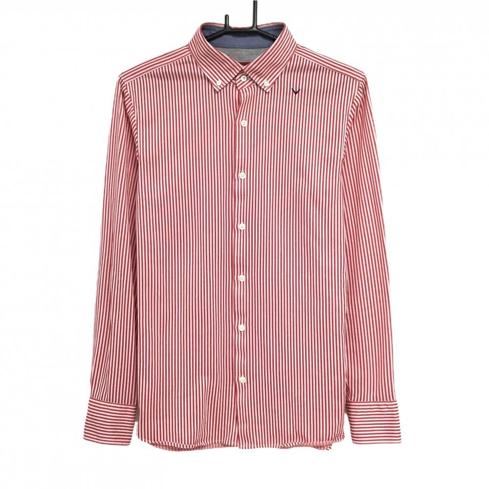 【美品】ゾーイ 長袖タートルネックシャツ レッドピンク系×白 細ボーダー コットン100% ハイネック レディース M ゴルフウェア ZOY
