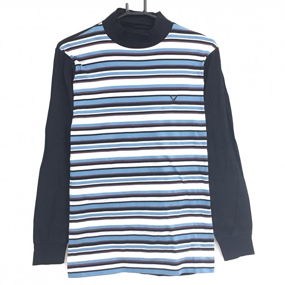【美品】キャロウェイ 長袖ハイネックシャツ オフホワイト×黒 袖下メッシュ メンズ M ゴルフウェア Callaway