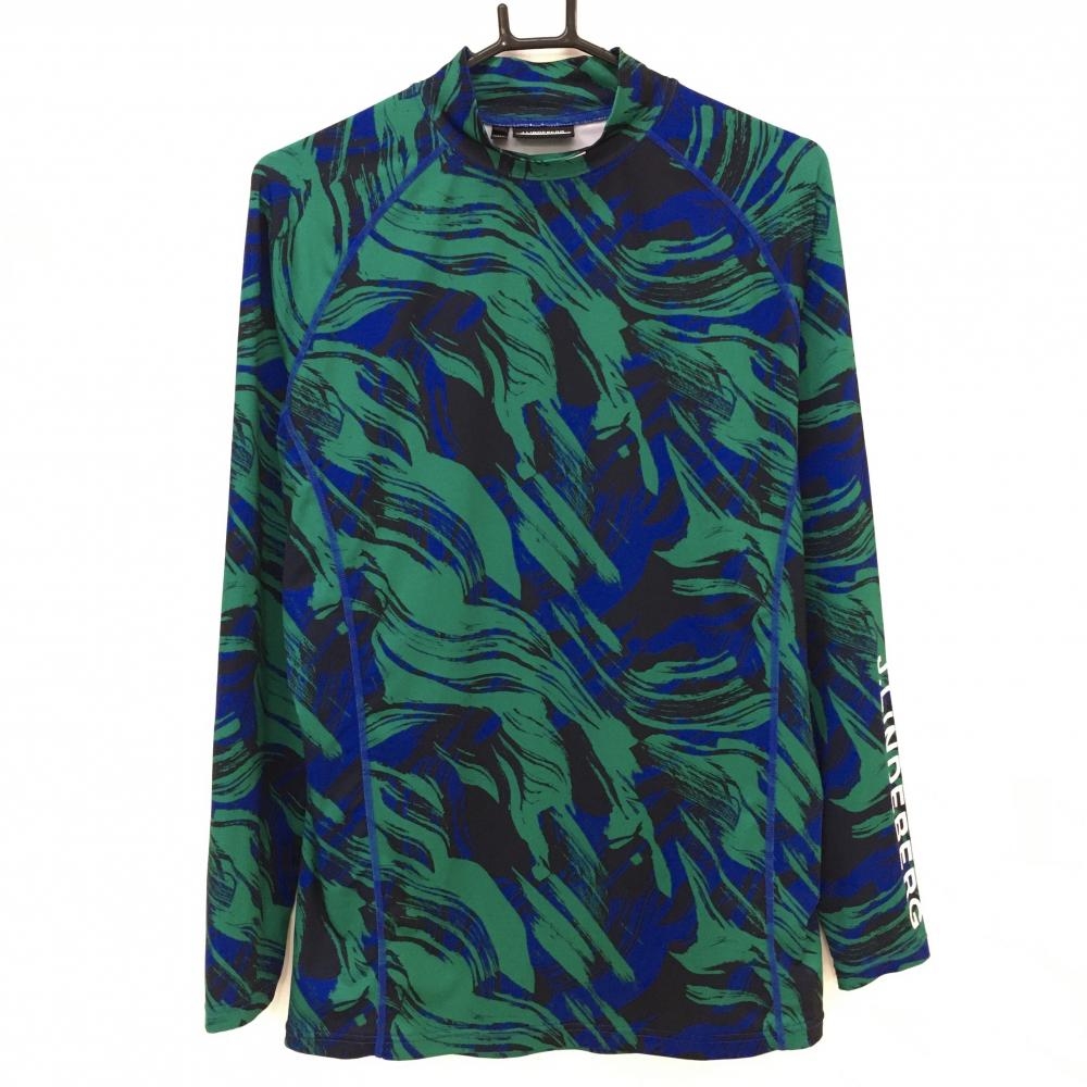 【美品】ジャックバニー 長袖ハイネックシャツ グリーン×白 ボーダー ロゴ レディース 0(S) ゴルフウェア Jack Bunny