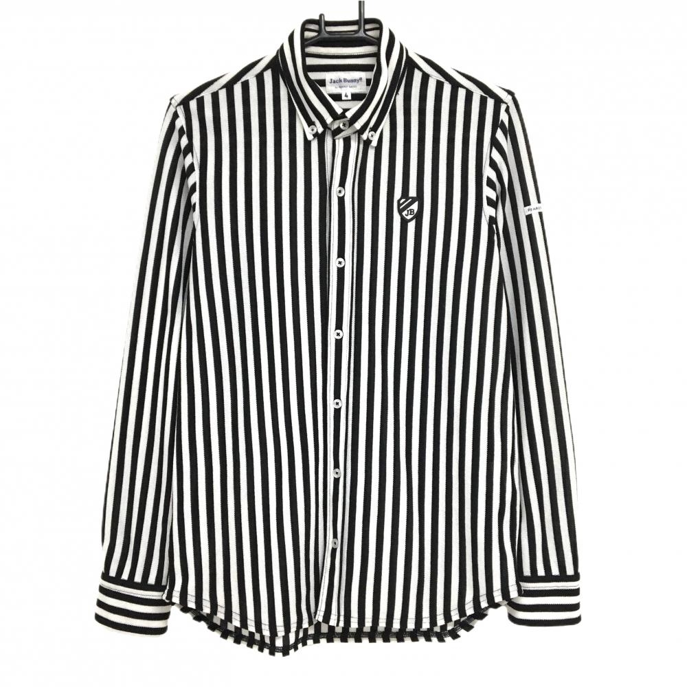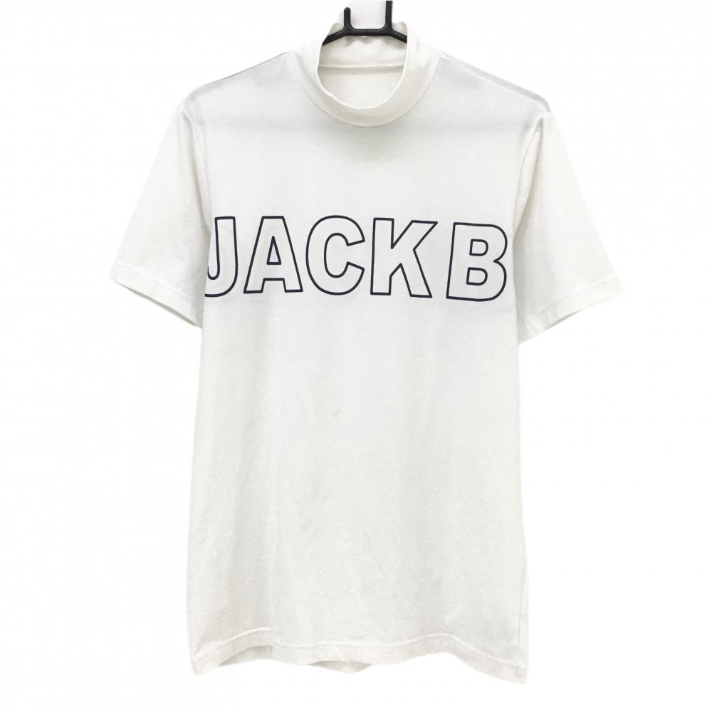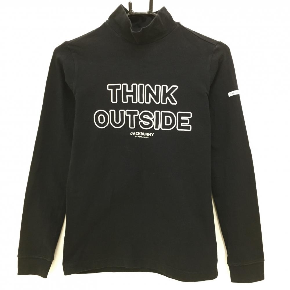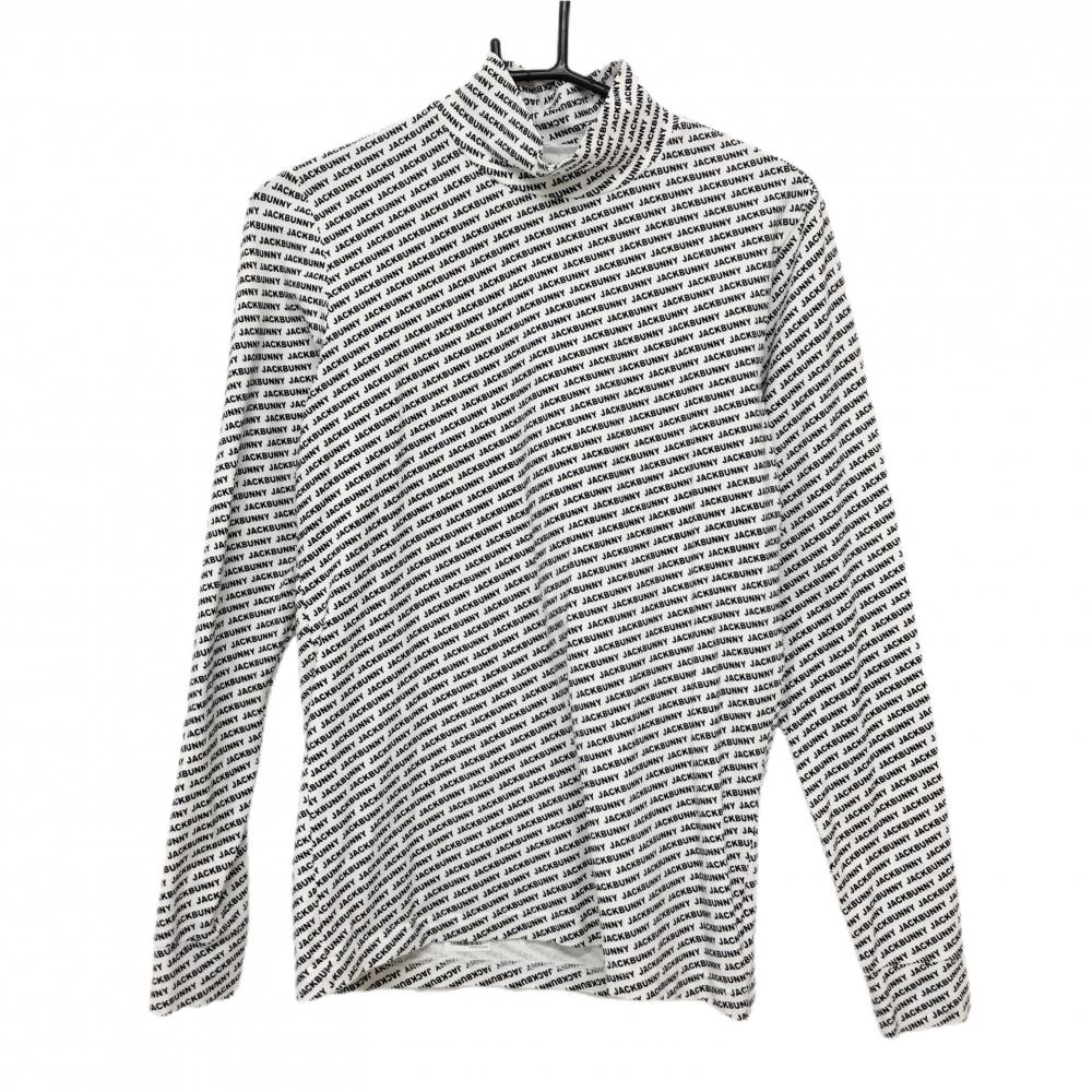 ジャックバニー 長袖ハイネックシャツ 白×黒 ロゴ総柄 レディース 2(L) ゴルフウェア Jack Bunny