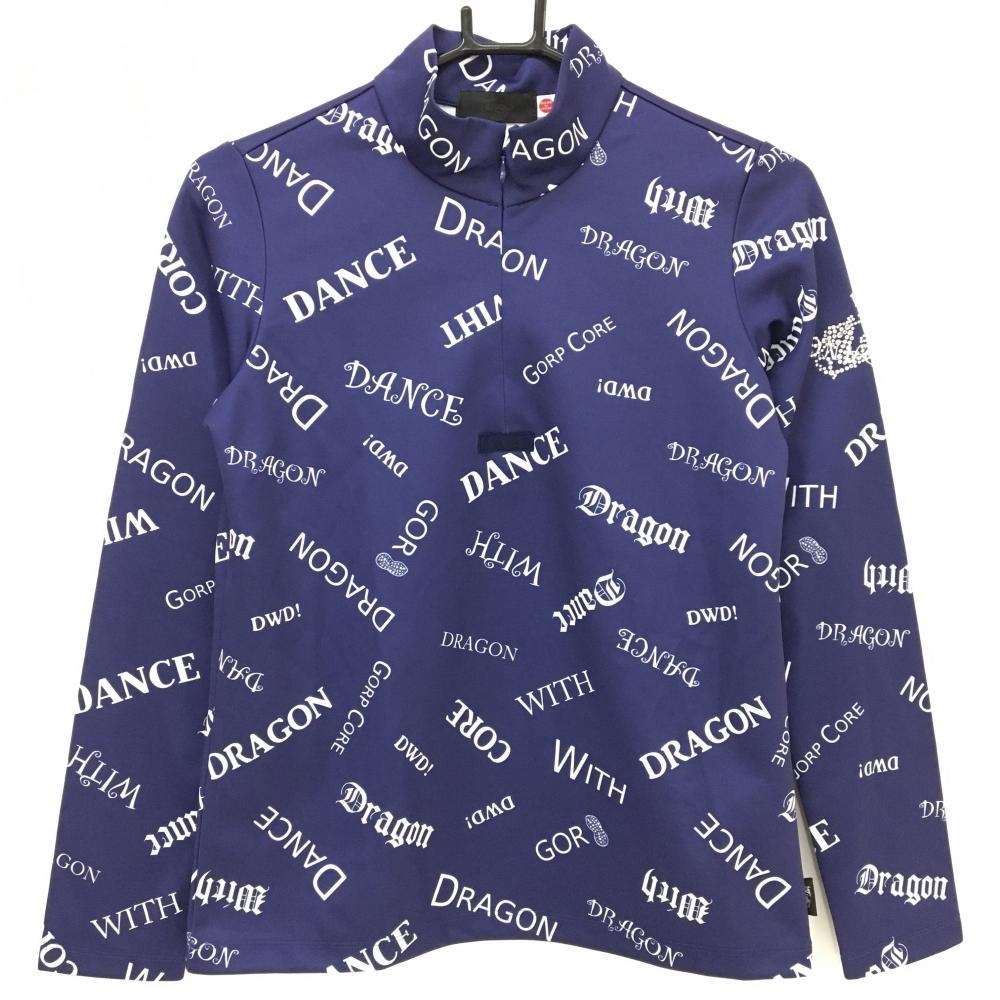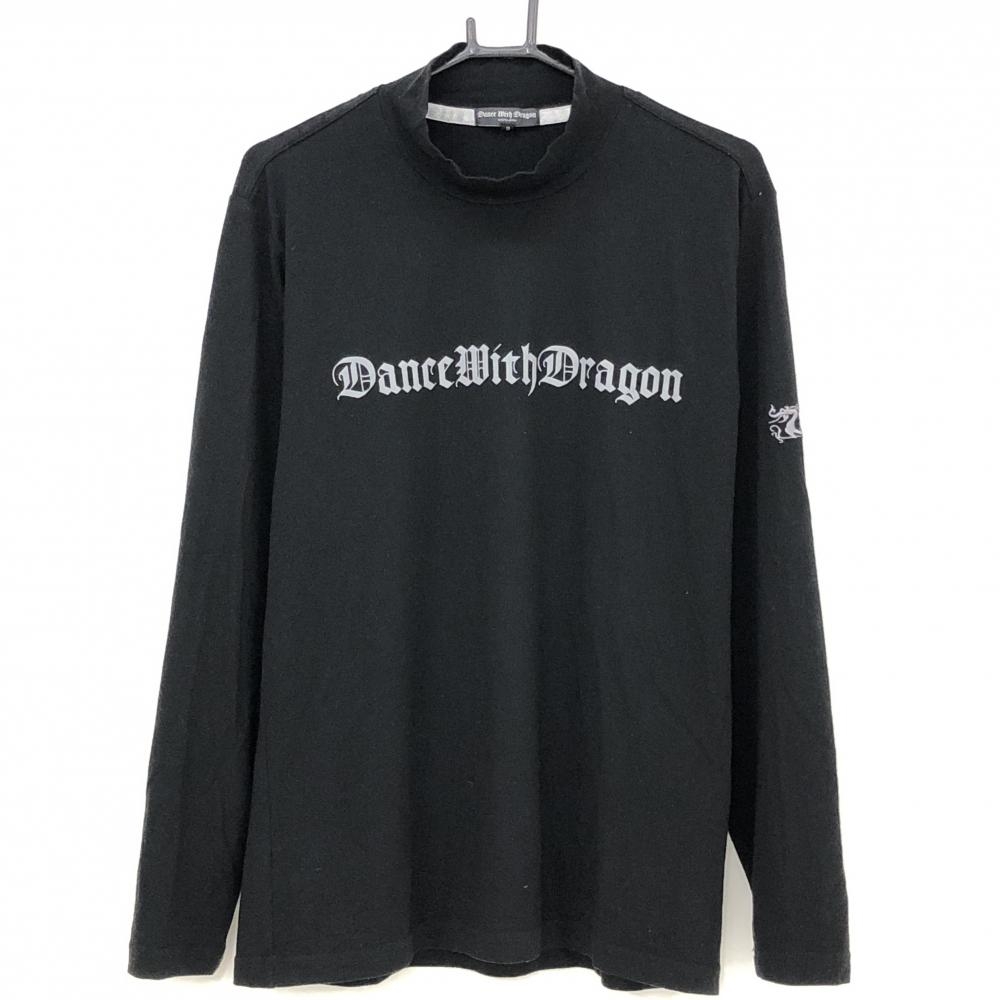 ダンスウィズドラゴン 長袖ハイネックシャツ 黒×白 フロント・袖ロゴ ストレッチ レディース 2(M) ゴルフウェア Dance With Dragon