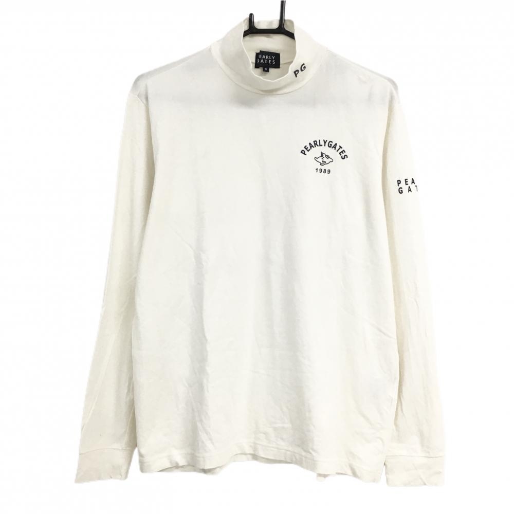 パーリーゲイツ 長袖ハイネックシャツ 白×黒 袖ロゴ メンズ 6(XL) ゴルフウェア PEARLY GATES